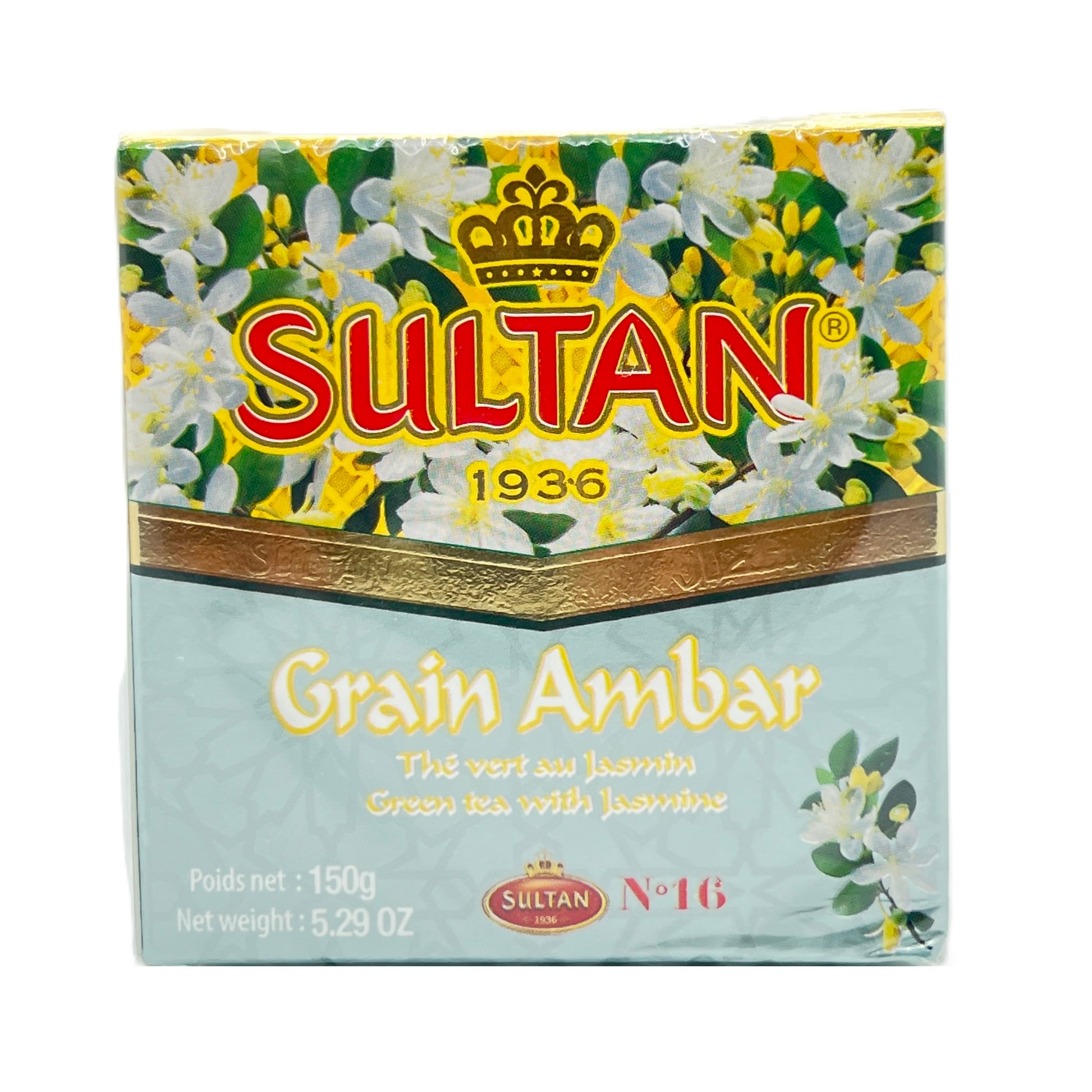 Immerse yourself in the soothing aroma and delicate flavor of Sultan Grain Ambar Green Tea with Jasmine — a refined blend that beautifully unites the freshness of Moroccan green tea with the enchanting fragrance of jasmine blossoms.